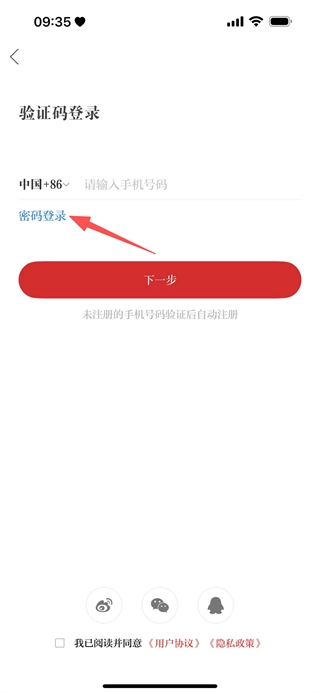 在登錄頁面,選擇密碼登錄選項(xiàng),即可切換到密碼登錄界面。