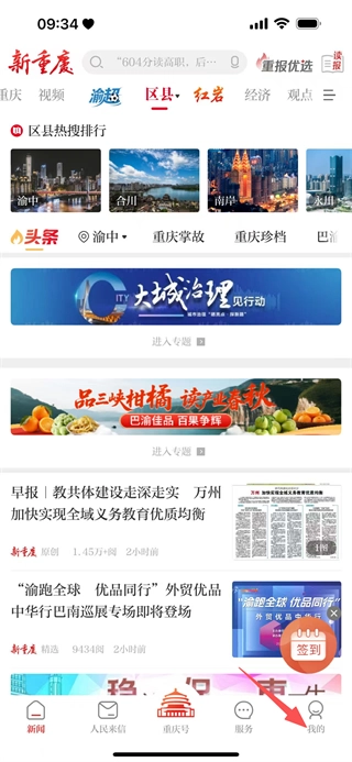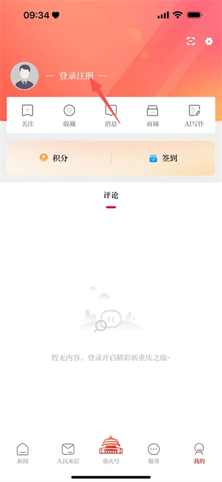 在新重慶首頁,點(diǎn)擊底部的“我的”選項(xiàng),即可進(jìn)入個(gè)人頁面。