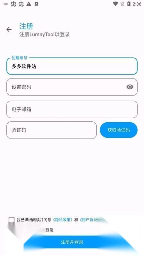 4、輸入好注冊(cè)信息之后點(diǎn)擊注冊(cè)登錄即可。