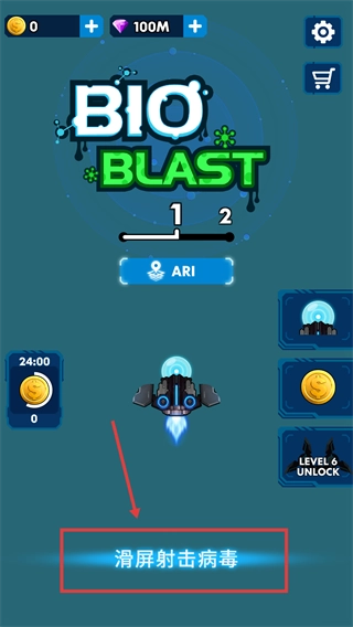 根據(jù)提示通過滑屏操作操控【飛機(jī)】移動(dòng),借助自動(dòng)攻擊功能射擊【星際病毒】,熟悉基礎(chǔ)戰(zhàn)斗邏輯。