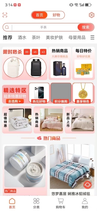 進入首頁后,您可以瀏覽所有品類的商品信息,平臺支持關(guān)鍵詞搜索功能以及智能推薦服務(wù)。