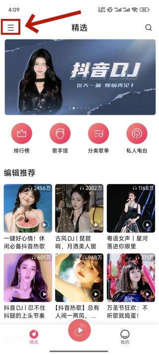 在本站安裝正版小米音樂(lè),打開(kāi)進(jìn)入界面后,點(diǎn)擊圖中所示的標(biāo)識(shí)