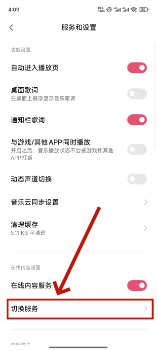 進(jìn)入“服務(wù)和設(shè)置”界面,點(diǎn)擊“切換服務(wù)”