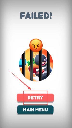 失敗重試規(guī)則:當(dāng)屏幕上顯示“FAILED!”提示時(shí),點(diǎn)擊“RETRY”按鈕即可重新嘗試當(dāng)前關(guān)卡。