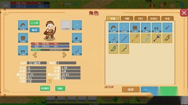 2、點擊右上角角色圖標查看自身屬性、當前職業(yè)及裝備庫存。