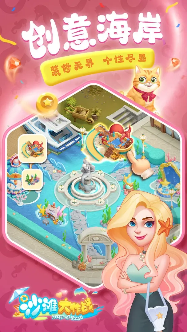 1.清新視覺(jué)體驗(yàn):卡通畫風(fēng)呈現(xiàn)海灘世界,角色建模細(xì)膩,沉浸感強(qiáng)。