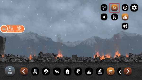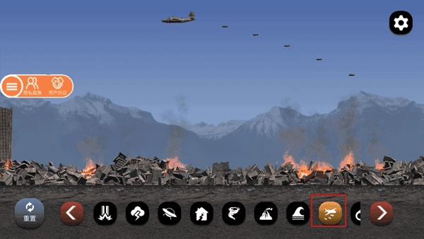 “重置”按鈕設(shè)有現(xiàn)代CBD、舊城巷弄、海濱度假區(qū)、工業(yè)港區(qū)這四種城市模板回檔選擇,能讓你便捷地反復(fù)測試不同地貌環(huán)境下的破壞反應(yīng)。