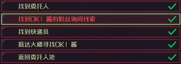 蛛絲馬跡任務(wù),在返回安的公寓后前往1樓就能觸發(fā)。這是一個(gè)系列任務(wù),包含4個(gè)支線,以下是任務(wù)一覽。
