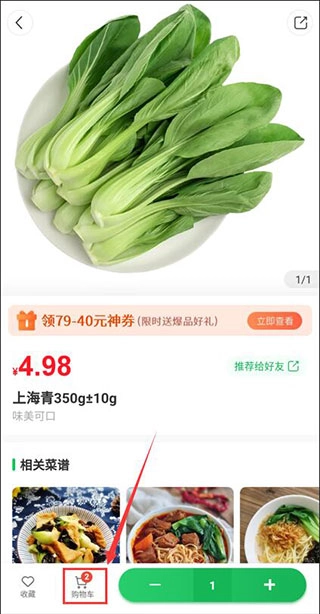 然后進(jìn)入商品詳情頁(yè),點(diǎn)擊右下角綠色的“加入購(gòu)物車”按鈕,就能成功將商品添加到購(gòu)物車。