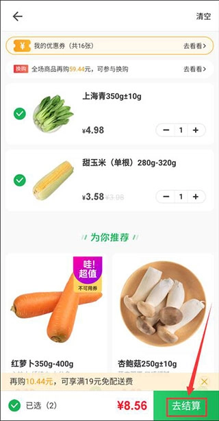 選擇商品后,再點(diǎn)擊“結(jié)算”。