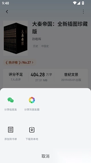 精選數(shù)十萬冊出版社授權(quán)書籍,包含小說、社科、外文原版等全品類內(nèi)容;