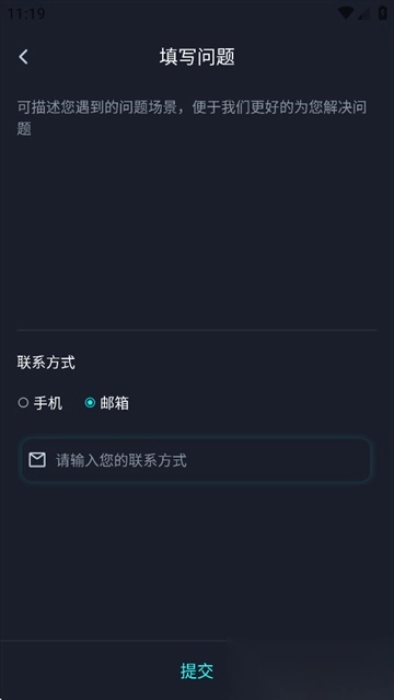 在反饋界面中根據(jù)實際情況選擇問題分類;