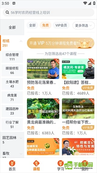 如果想要免費(fèi)學(xué)習(xí)農(nóng)業(yè)知識(shí),你可以選擇頁面上方的“免費(fèi)”選項(xiàng)。