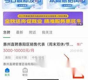 進(jìn)入惠州直聘,進(jìn)入首頁(yè)選擇我的選項(xiàng);