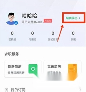 點(diǎn)擊最上方的編輯簡(jiǎn)歷;