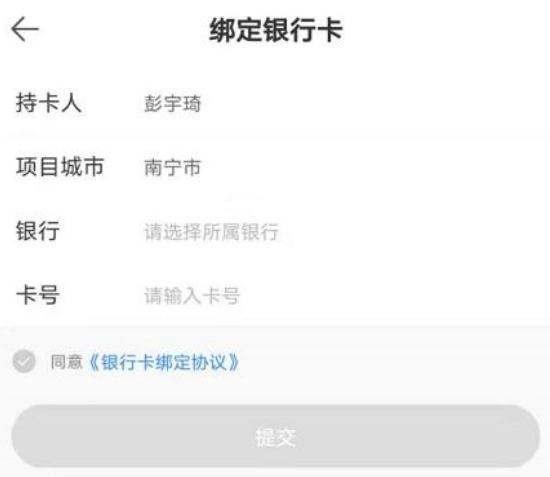 點擊工資卡功能后,若用戶尚未綁定工資卡,可通過選擇開戶行并輸入銀行卡賬號來完成工資卡綁定操作。