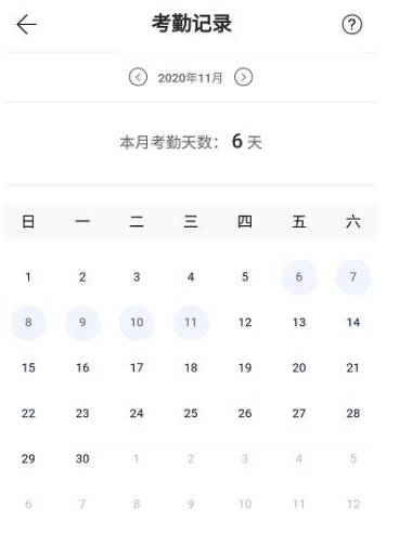 步驟二、藍色圓圈表示當天有出勤記錄,點擊相應的圓圈就能查看考勤詳情。