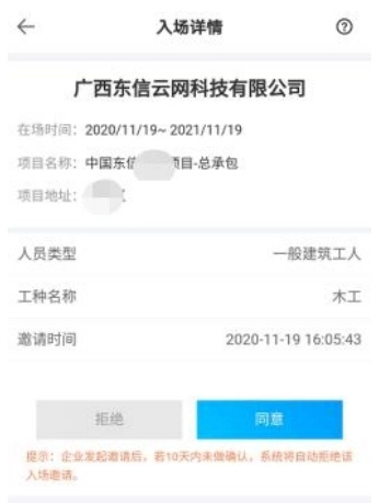步驟二、點擊企業(yè)發(fā)送的邀請,在核實工程信息準確無誤后,點擊確認按鈕