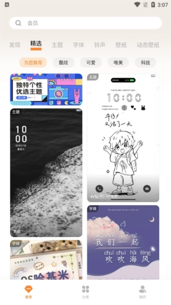 海量資源隨心選:這里有專業(yè)設計師精心打造的主題、字體、鈴聲、鎖屏、壁紙以及熄屏時鐘(部分機型適配),豐富的精品資源庫,總能找到你心儀的那一款。