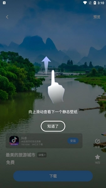 在壁紙詳情頁,點擊頁面下方的【】按鈕,或者通過滑動操作,都能查看下一張壁紙。