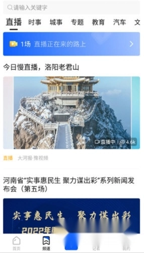 豫視頻是河南日?qǐng)?bào)報(bào)業(yè)集團(tuán)有限公司為本地市民量身打造的一款專(zhuān)業(yè)權(quán)威、服務(wù)全面、資訊豐富的資訊軟件。它界面簡(jiǎn)潔,匯聚海量最新資訊,涵蓋河南各地的民生新聞、生活服務(wù)、教育文化等內(nèi)容,用戶(hù)可隨時(shí)了解家鄉(xiāng)動(dòng)態(tài),內(nèi)容通過(guò)直播、視頻、文章等多種形式呈現(xiàn)。當(dāng)前豫視頻頁(yè)面分為四個(gè)部分,首頁(yè)集成了軟件的大部分功能,提供涵蓋時(shí)政、經(jīng)濟(jì)、社會(huì)、文化、教育、科技、娛樂(lè)、體育、生活等領(lǐng)域的熱門(mén)資訊,供用戶(hù)免費(fèi)瀏覽。此外,用戶(hù)還能通過(guò)軟件向記者求助,助力解決生活中的實(shí)際問(wèn)題,充分滿(mǎn)足市民的生活需求。
