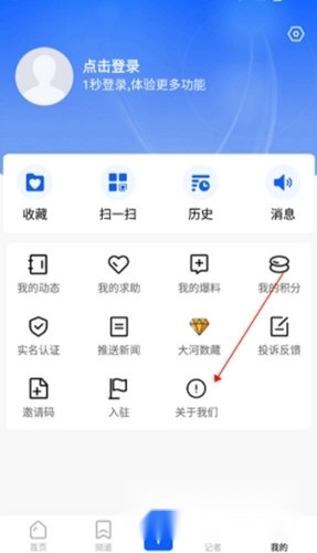 用戶(hù)可進(jìn)入【我的】頁(yè)面,點(diǎn)擊頁(yè)面內(nèi)的【關(guān)于我們】(即下圖紅色箭頭所指區(qū)域)
