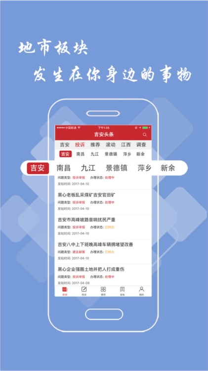 吉安頭條是一款專注服務(wù)吉安地區(qū)用戶的綜合性新聞資訊平臺,旨在為用戶提供及時、準(zhǔn)確且貼近生活的本地資訊服務(wù)。作為深耕吉安市場的移動應(yīng)用,它以“連接本地生活,傳遞真實(shí)聲音”為核心定位,通過整合區(qū)域內(nèi)的新聞資源、生活服務(wù)信息與用戶互動功能,打造出一個涵蓋新聞、生活、社交的多元化信息服務(wù)平臺。