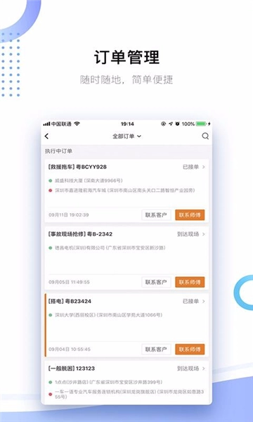 全部訂單里能清晰了解各類訂單的具體類型,像救援拖車、事故現(xiàn)場搶修等對應(yīng)類型都能一目了然。