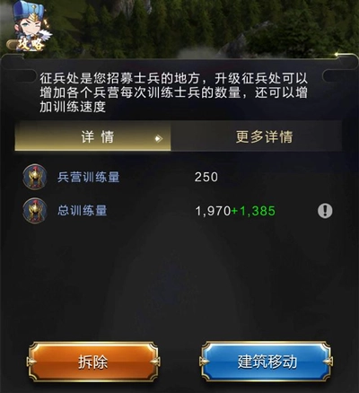 【征兵處】是能提高部隊訓練數(shù)量與速度的強力功能建筑,在大規(guī)?!氨┍鼻?,增加【征兵處】的數(shù)量并提升其等級,是提升訓練效率的有效途徑?!菊鞅帯孔疃嗫山ㄔ?個,其等級受王城等級制約。