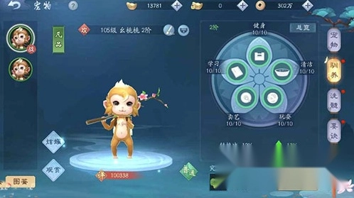 首先是寵物系統(tǒng)的開(kāi)啟,我們?cè)谶_(dá)到十四級(jí)并完成對(duì)應(yīng)的主線任務(wù)后,就能解鎖寵物系統(tǒng)。之后在43級(jí)、74級(jí)、100級(jí)時(shí),會(huì)依次開(kāi)啟寵物馴養(yǎng)、寵物傳功、寵物要訣、寵物洗髓等功能。其中43級(jí)解鎖的寵物馴養(yǎng)可提升寵物的各項(xiàng)屬性,從而間接增強(qiáng)我們的戰(zhàn)斗力。寵物馴養(yǎng)包含健身、清潔、玩耍、賣(mài)藝、學(xué)習(xí)五個(gè)興趣方向,分別對(duì)應(yīng)提升寵物的氣血防御、破防格擋、命中閃避、暴擊抗暴、攻擊屬性。這五個(gè)興趣方向可以升滿(mǎn),之后我們可以消耗低階草還丹進(jìn)行突破,通過(guò)提升屬性轉(zhuǎn)換比來(lái)進(jìn)一步增加寵物和主人的戰(zhàn)力。