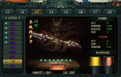 頓悟晉升為紫將后,武將的三維屬性會得到顯著提升,并且還能解鎖專屬的特色武器。紫將魏延的專屬武器是奪魂修羅刀,其被動技能“鎮(zhèn)遠(yuǎn)”能夠?qū)M排的敵人造成傷害,同時驅(qū)散對方身上的增益效果;另一個被動技能“武卒”則可以讓己方部隊獲得癲狂狀態(tài),從而大幅提高傷害輸出。