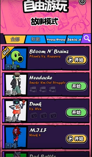 節(jié)奏對戰(zhàn)最新版是JingmaoTec打造的一款趣味十足的音樂節(jié)奏游戲。它延續(xù)了FNF系列標(biāo)志性的風(fēng)格與角色造型,搭配魔性的音樂、豐富的角色類型以及海量可選歌曲,為玩家?guī)愍?dú)特體驗(yàn)。游戲核心玩法是通過音樂節(jié)奏點(diǎn)擊按鈕進(jìn)行對戰(zhàn),除了的數(shù)十首曲目,還有上百首模組音樂可供玩家自由選擇挑戰(zhàn)。每首歌曲都設(shè)有不同難度,玩家可根據(jù)自身水平和喜好挑選。感興趣的話,不妨來嘗試一下!
