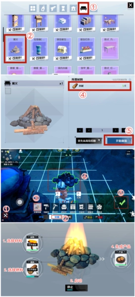 溫馨提示:搭建好【篝火】后,添加材料時還需同時加入“燃料”,其中最常見的燃料便是【木材】。