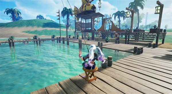 在河岸附近,能看到一些立著黃色標(biāo)識的釣魚小屋。小屋的棧橋上擺放著供人垂釣的板凳,只要和這些板凳互動,就能開啟釣魚活動。