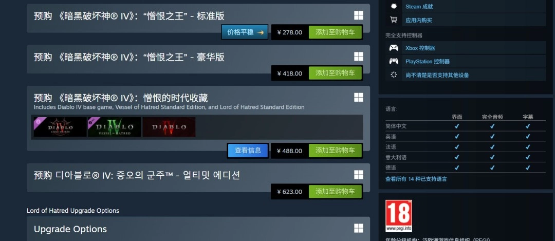 解鎖《暗黑破壞神4》術(shù)士職業(yè)需要購(gòu)買(mǎi)《暗黑4》本體游戲+“憎恨之王”資料片,“憎恨之王”資料片Steam國(guó)區(qū)278元,而解鎖《暗黑破壞神2》重制版術(shù)士職業(yè)需要購(gòu)買(mǎi)“術(shù)士君臨”擴(kuò)展包或《暗黑破壞神2》重制版終極包。