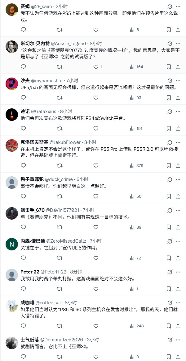 如果《巫師4》的畫面和玩法與此不符,就會重蹈《賽博朋克2077》過度承諾的覆轍,我覺得會遭到一些玩家的強烈反對。。