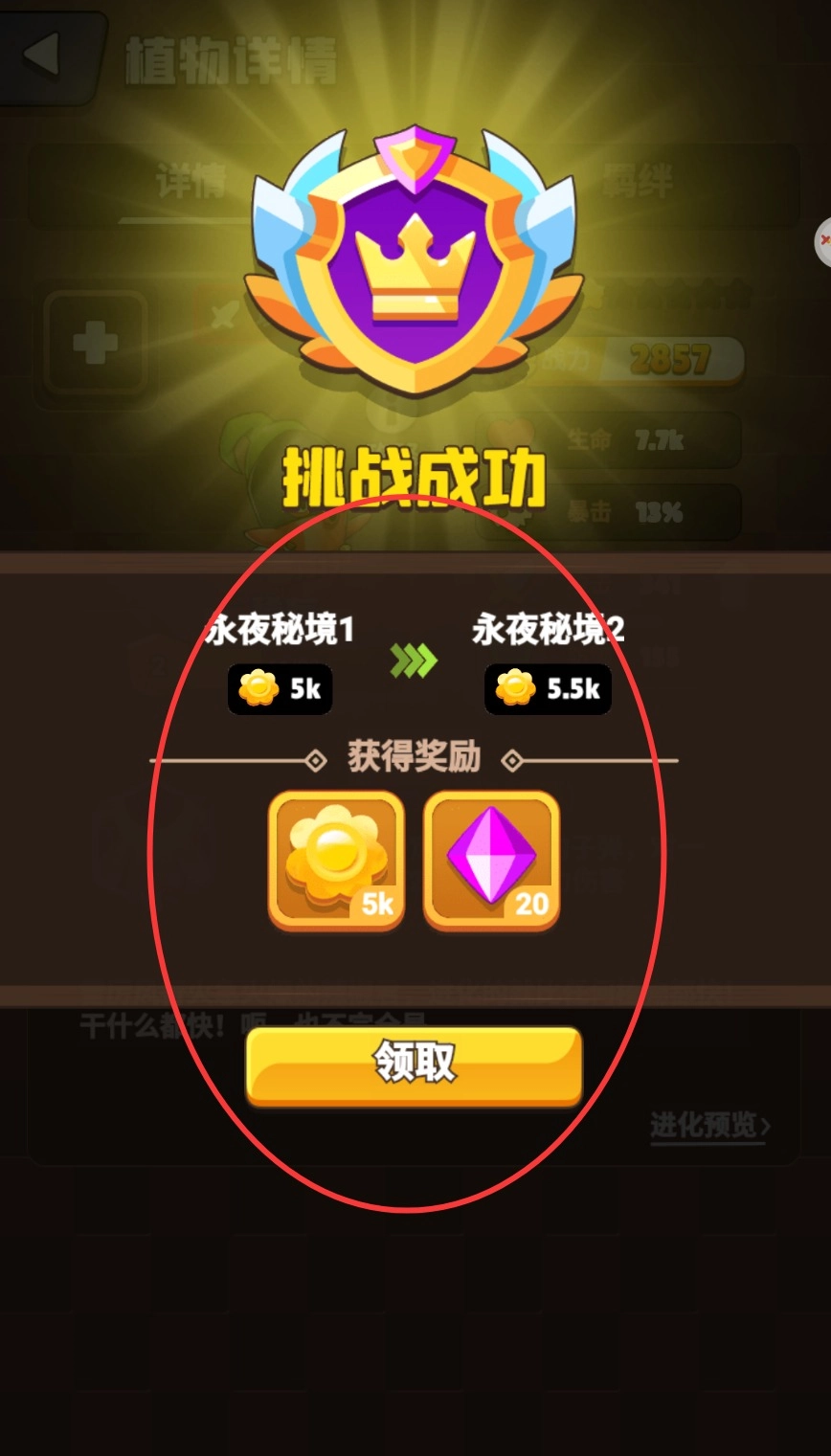 3、成功消滅所有僵尸即可過關(guān),系統(tǒng)會根據(jù)表現(xiàn)發(fā)放陽光和鉆石作為通關(guān)獎勵。