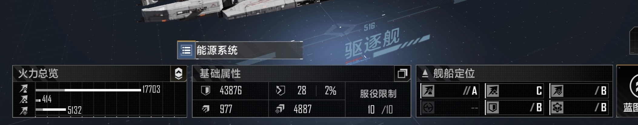 基礎(chǔ)屬性分為兩行,第一行從左往右是結(jié)構(gòu)值(也就是血量),護(hù)甲和能量抗性,第二行是艦船的常規(guī)航行速度和曲率航行速度,對于飛機(jī)和護(hù)航艇,點(diǎn)擊這一欄可以看到它們的去程和返程時(shí)間,這是網(wǎng)易新加的屬性,是飛機(jī)飛到敵人臉上開始攻擊,以及飛機(jī)完成攻擊后回到機(jī)庫需要的時(shí)間。最右側(cè)的服役限制是你能同時(shí)擁有的該艦船的數(shù)量。
