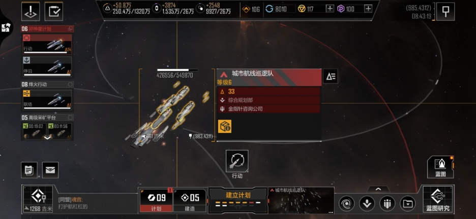 到八本升級相關(guān)建筑后可以建造高級采礦平臺和大型工程艦。一般來說,七八本的建筑升級消耗大,到了八本的基本都有滿級中型工程船,這時(shí)候白板大型工程船如果不搭配高級采礦平臺,采礦效率是會下降的,這是必須經(jīng)歷的發(fā)展的陣痛,建議逐步、分批次替換成大型,搭配高級采礦平臺、使用上文提到的計(jì)劃圈擺放技巧并選擇開采較近的礦點(diǎn)可以縮減這個過渡期。