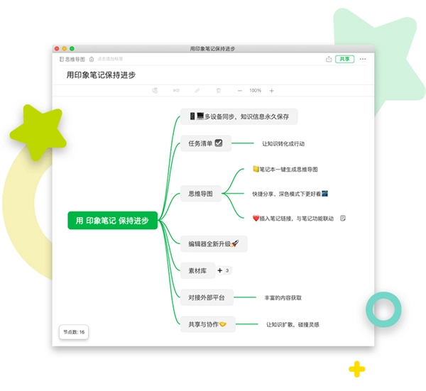 6、全新思維導(dǎo)圖功能也完美兼容了印象筆記原有的歷史功能,支持夜間模式、筆記歷史版本、一鍵分享…你愛(ài)用的功能一直都在。