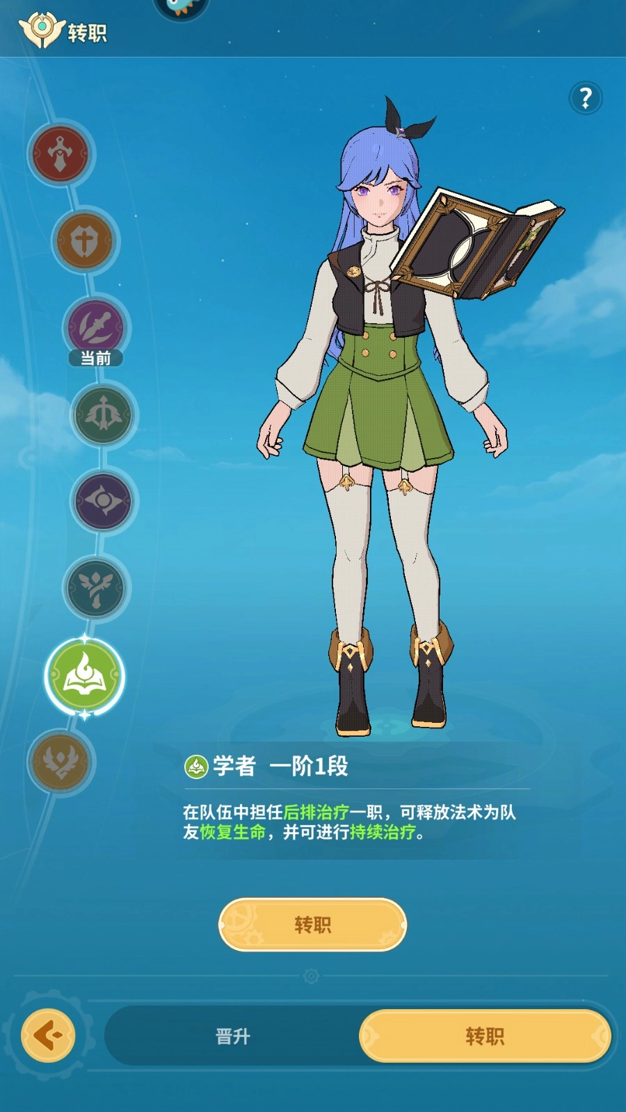 學者:后排治療,釋放法術為隊友恢復生命,并可持續(xù)治療。