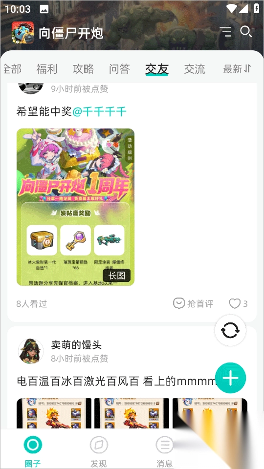 2、選擇好你的游戲圈后,可以看到有各種福利;