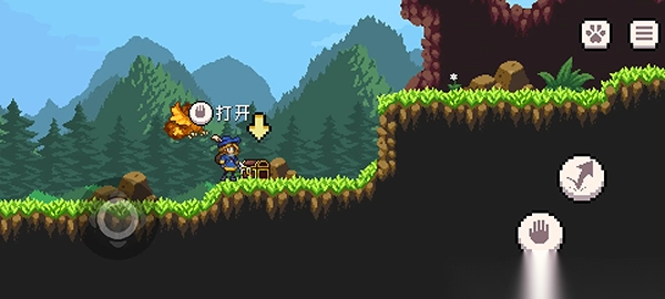 3、觸發(fā)劇情對(duì)戰(zhàn)波球,一路向右來(lái)到如圖所示的位置拿到游戲中第一個(gè)寶箱(山道1)