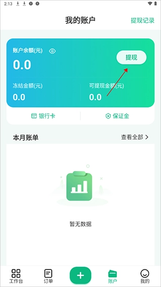 進(jìn)入賬戶頁面下點(diǎn)擊【提現(xiàn)】