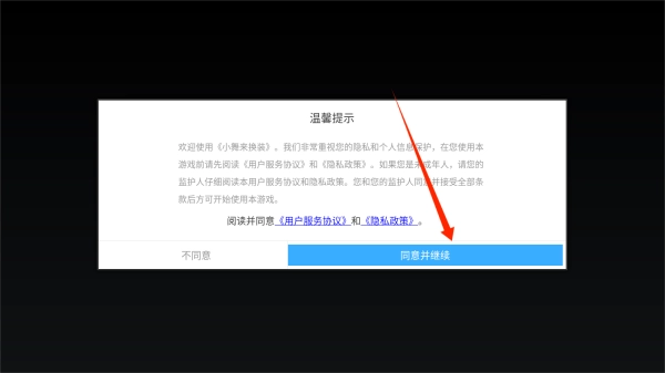 1、進(jìn)入游戲界面會(huì)彈出【同意并繼續(xù)】對(duì)話框,【點(diǎn)擊同意】即可。