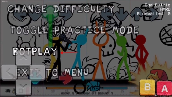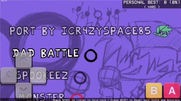 3、周五夜放克中左下角的方向鍵是打擊按鍵,右側(cè)可以調(diào)整游戲難度,選擇完成后點(diǎn)擊A鍵開始游戲。