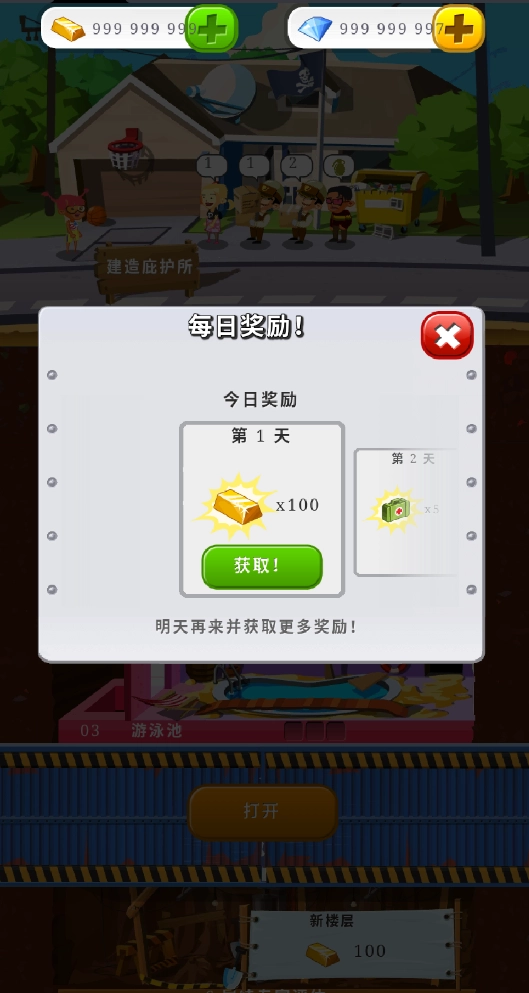 此時(shí)你只要用兌換碼兌換一個(gè)樓層正好修建在那個(gè)鉆石樓層上就可以不花鉆石跳過(guò)這個(gè)大坑了。