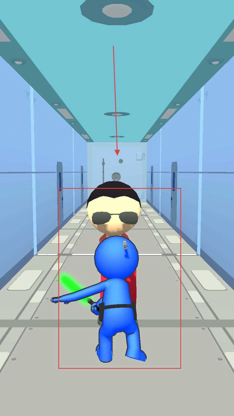 1. 開啟游戲,于游戲主頁面輕點【開始游戲】,玩家需操控手持綠色光劍的藍(lán)色小人,在走廊場景里移動。