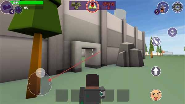 1. 利用左側搖桿操控角色移動,朝著目標區(qū)域進發(fā),尋覓敵人。