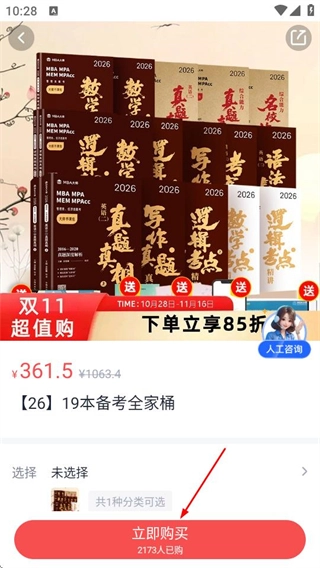 3、在書籍詳情頁面,點擊立即購買按鈕,可完成書籍購買操作。